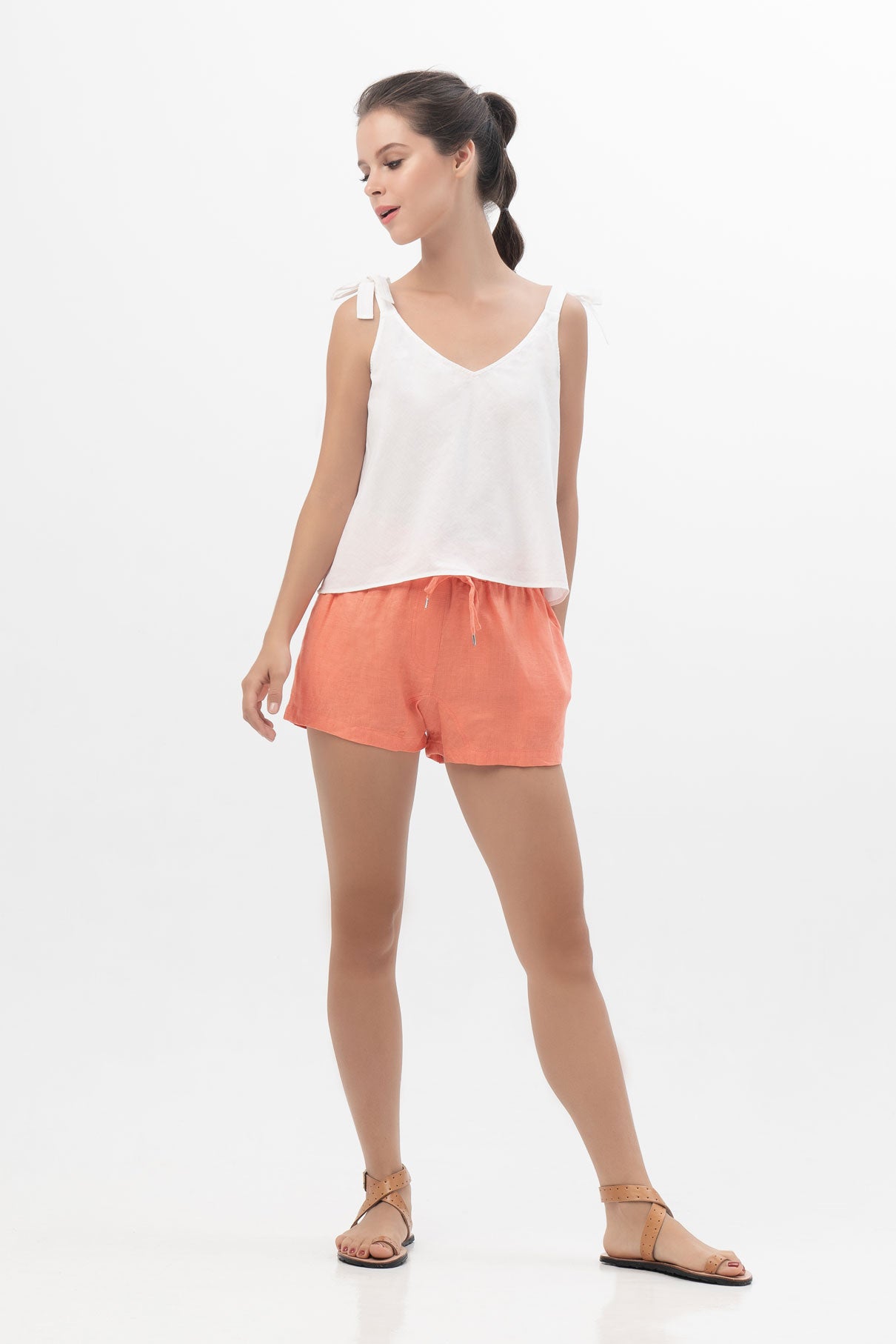 Casual, carefree, yet chic, the Andira shorts are made from soft linen fabric. These feature an elastic waistband with a drawstring and side pockets. A must-have summer essential, these shorts have resort wear vibes with their relaxing silhouette. Handmade and designed in Bali.