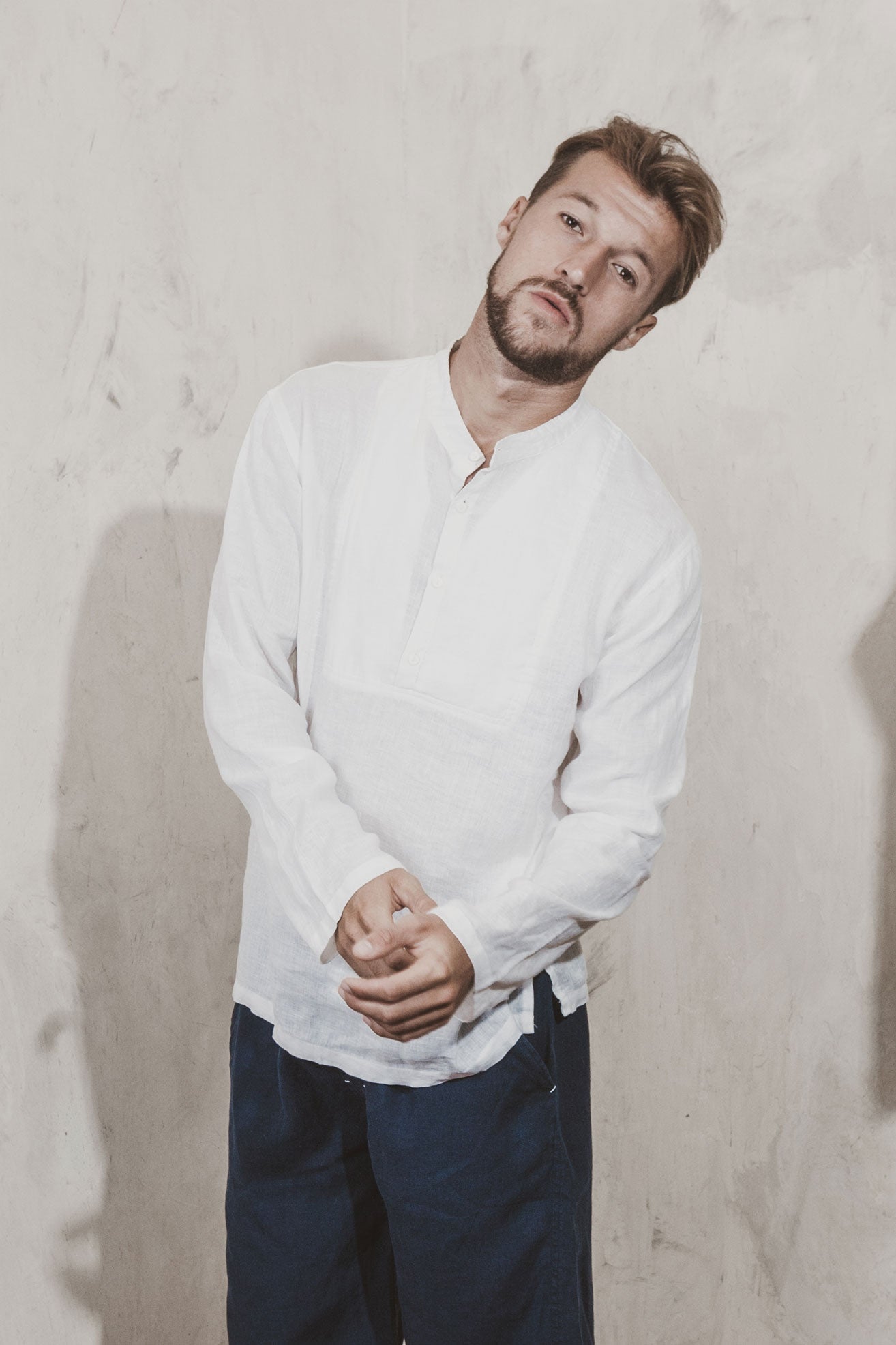 A casual long sleeve shirt for men, inspired by the Indian kurta. It features a mandarin collar with half button placket. Its simple cut and comfortable fit make it a perfect choice for those hot days. Pair it with your favorite jeans or straight-cut cotton pants. Handmade and designed in Bali.