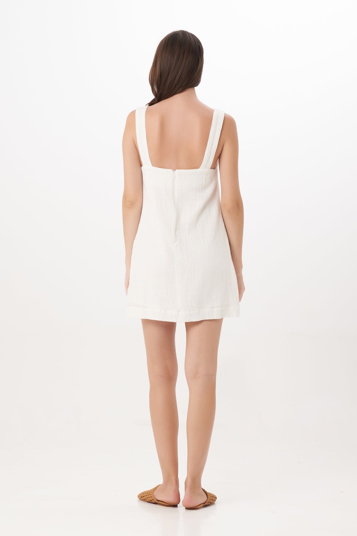 A short, relaxed-fit dress with wide shoulder straps. Crafted with a textured, crinkled fabric, the dress has a comfortable straight cut and suits different types of body figures. Elevate it with boho-chic accessories. Handmade and designed in Bali.